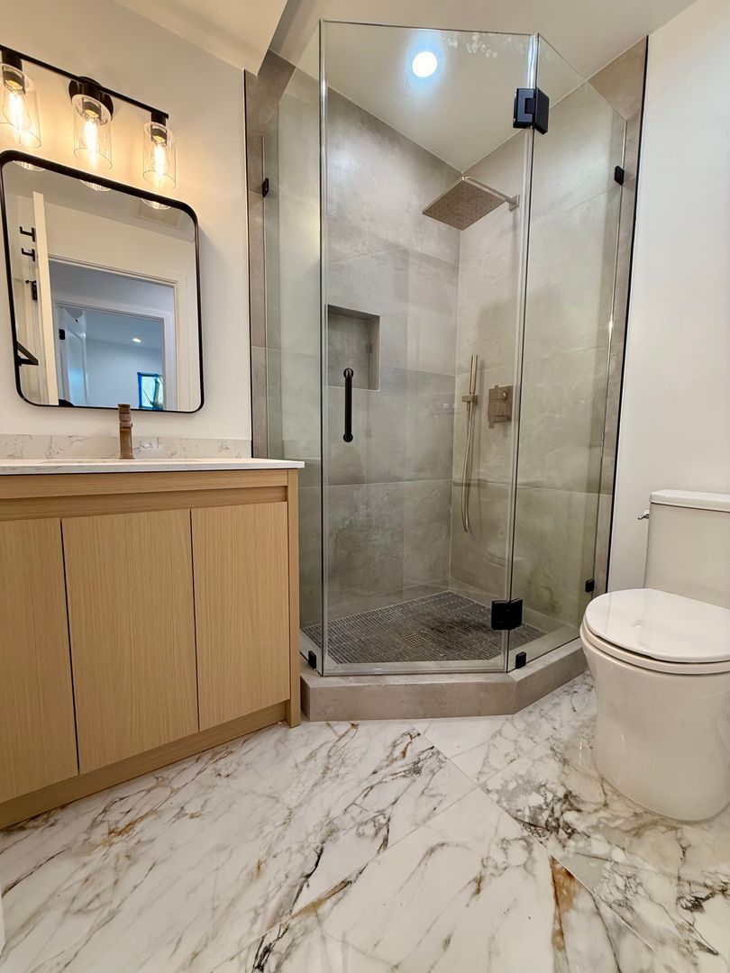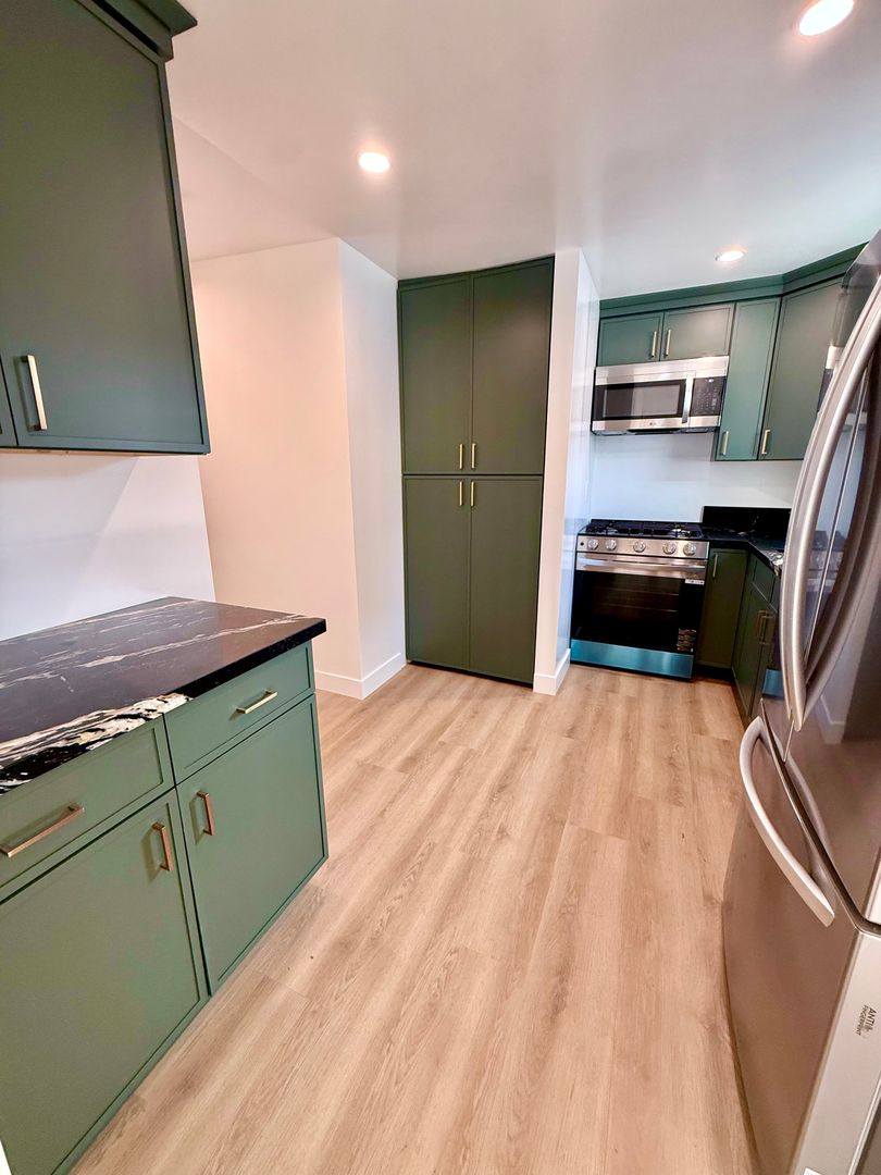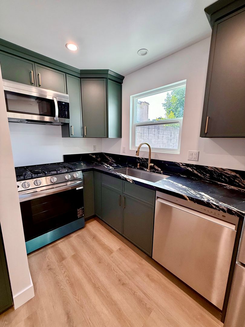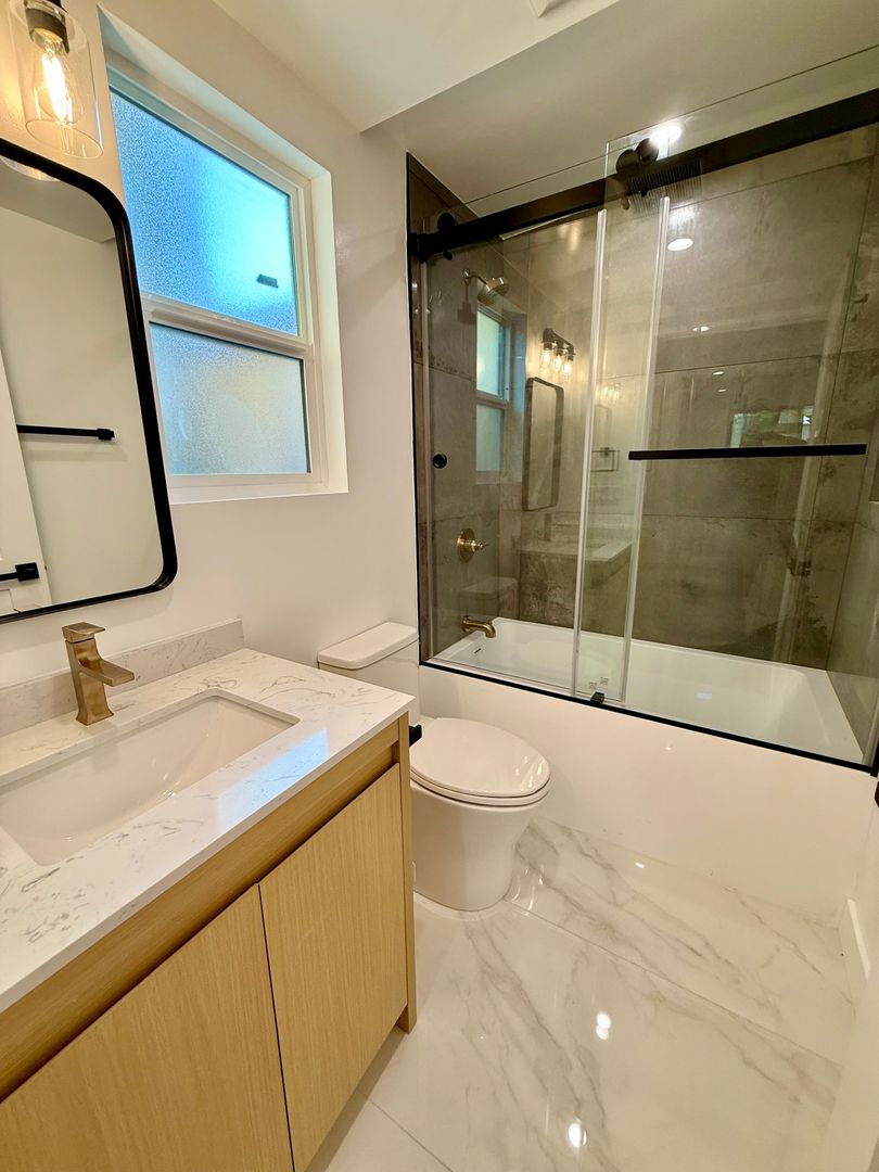 Inside, you’ll find a bright and cozy living area that lead to a designer kitchen featuring new stainless steel appliances, sleek cabinetry, and elegant marble quartz countertops. Both bedrooms are spacious, with the primary suite offering a walk-in closet and en-suite bath.