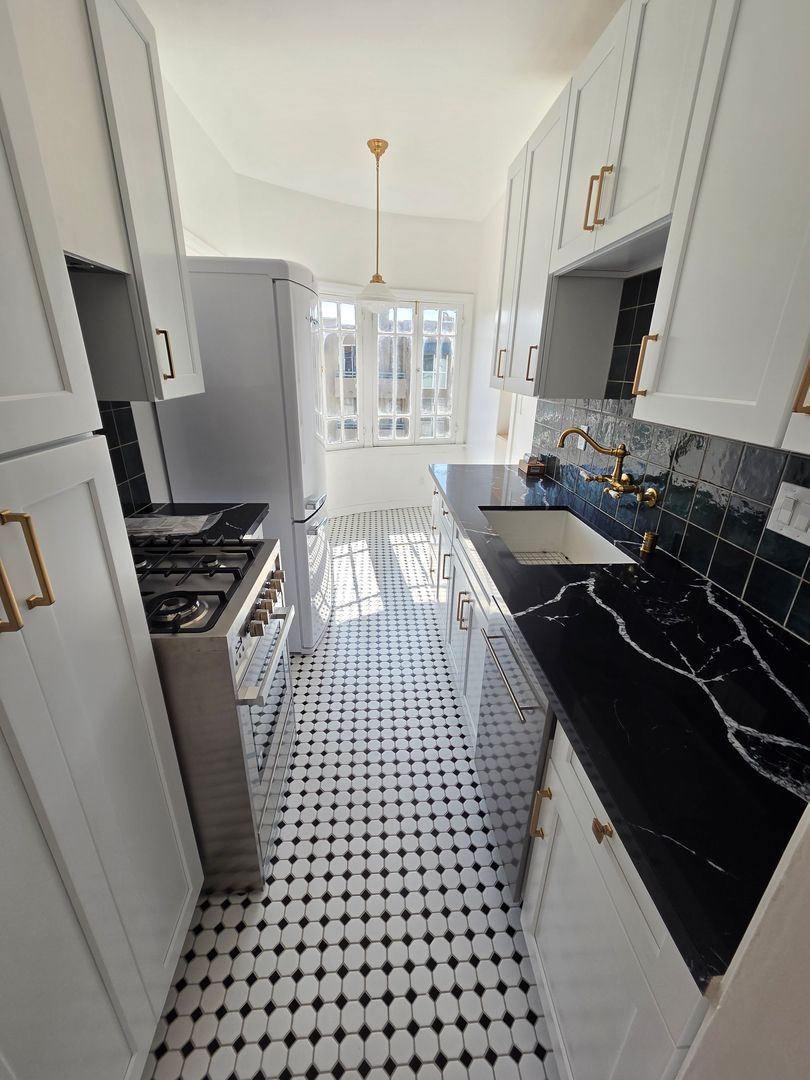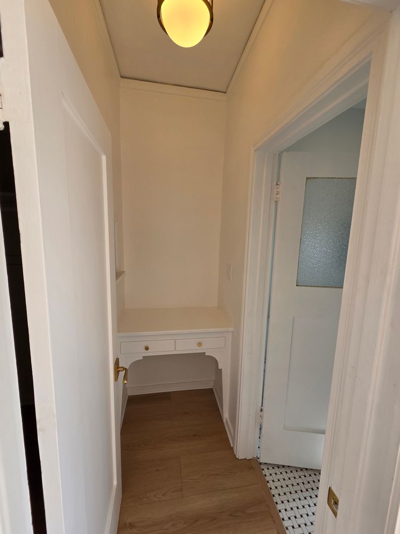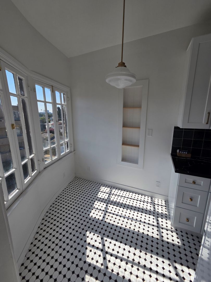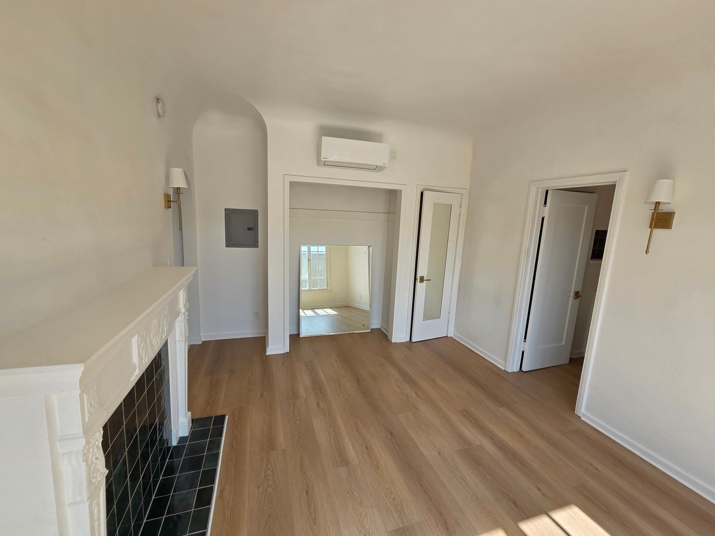 There's bright new flooring throughout, recently installed light fixtures, high ceilings, and large windows. With a beautiful decorative fireplace and a built-in vanity, this studio still retains its originality. The kitchen has been updated with beautiful countertops and a Classic retro fridge to complement the vintage floors. The full bathroom boasts a large tub to destress after work. There is plenty of storage, including a large closet and two additional storage closets. With the feel of a large one bedroom, this unit is the perfect opportunity to finally have a space of your own.