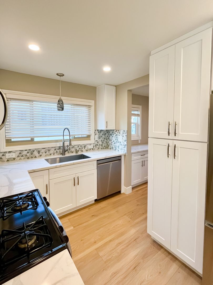 The bright, spacious bedroom overlooks a lush lemon tree, and the kitchen is equipped with all-new stainless steel appliances, including a dishwasher and refrigerator. One driveway parking space and a bonus small garage for storage add to the convenience.