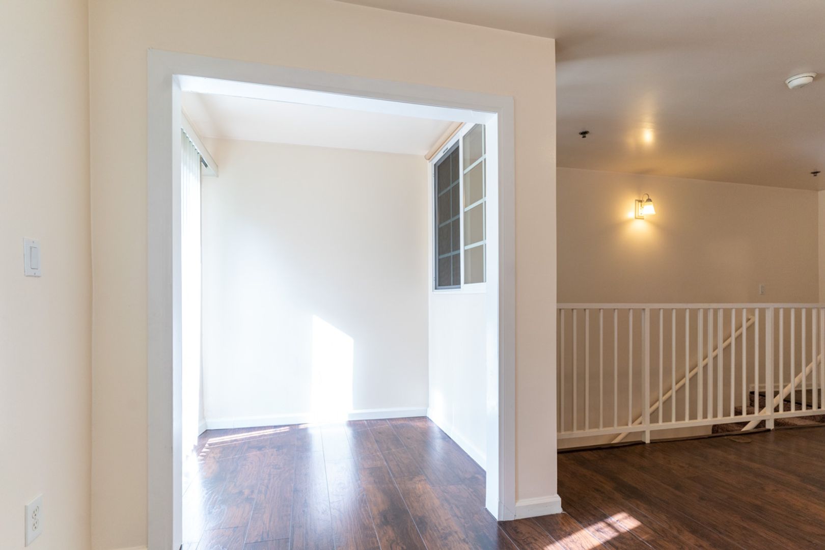 Upper level has loft like feel. Nice bedroom with wardrobe. Full bath and open area perfect for office, yoga/fitness space or additional living area. Also has a patio/sunroom seating area.