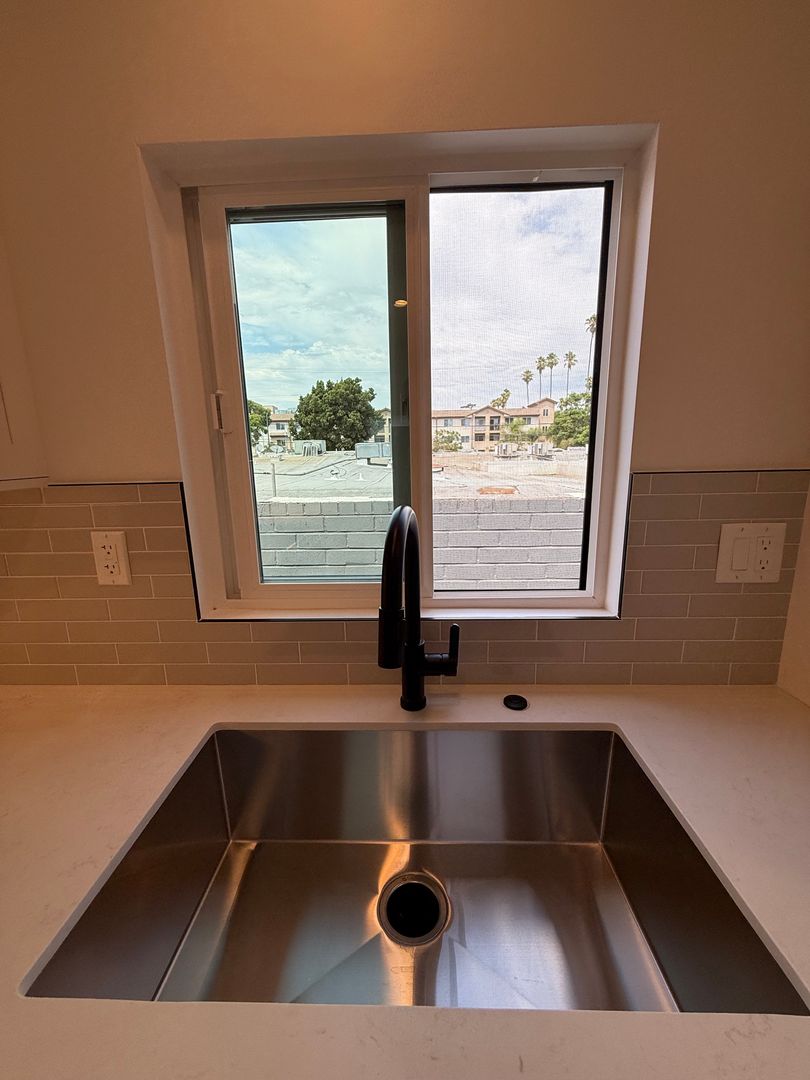 • Contemporary kitchen with quartz countertops & custom cabinetry