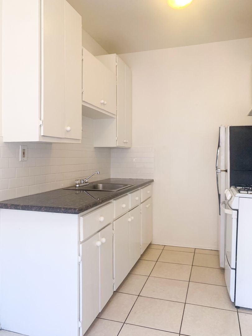 Apartment is a 1st floor Studio that features a large walk in closet and separate eat in kitchen has a dine in space. High ceilings, wall A/C, nice natural light and so much potential!