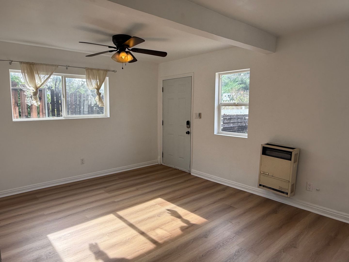 The main unit features an oversized bedroom with a generous closet area, an updated kitchen and bath, and abundant natural light throughout. The layout feels open yet functional, blending comfort with modern finishes.