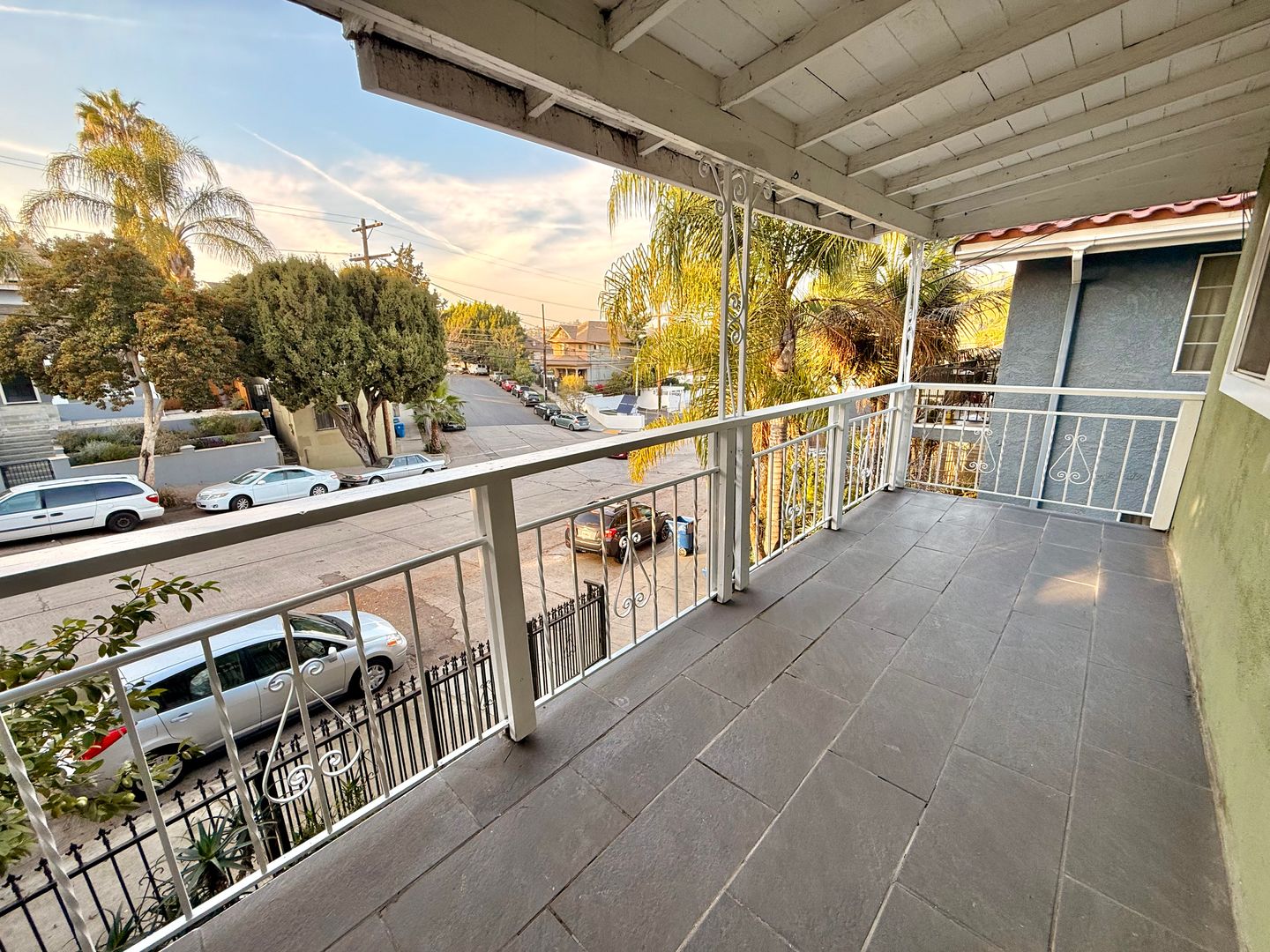 Enjoy hillside views from the second-level balcony, a modern kitchen with marble countertops and stainless steel appliances, and a spacious paved gated backyard ideal for outdoor dining, lounging, or additional parking. The home also features 2 parking spots, in-unit laundry, and central heat & AC for year-round comfort.