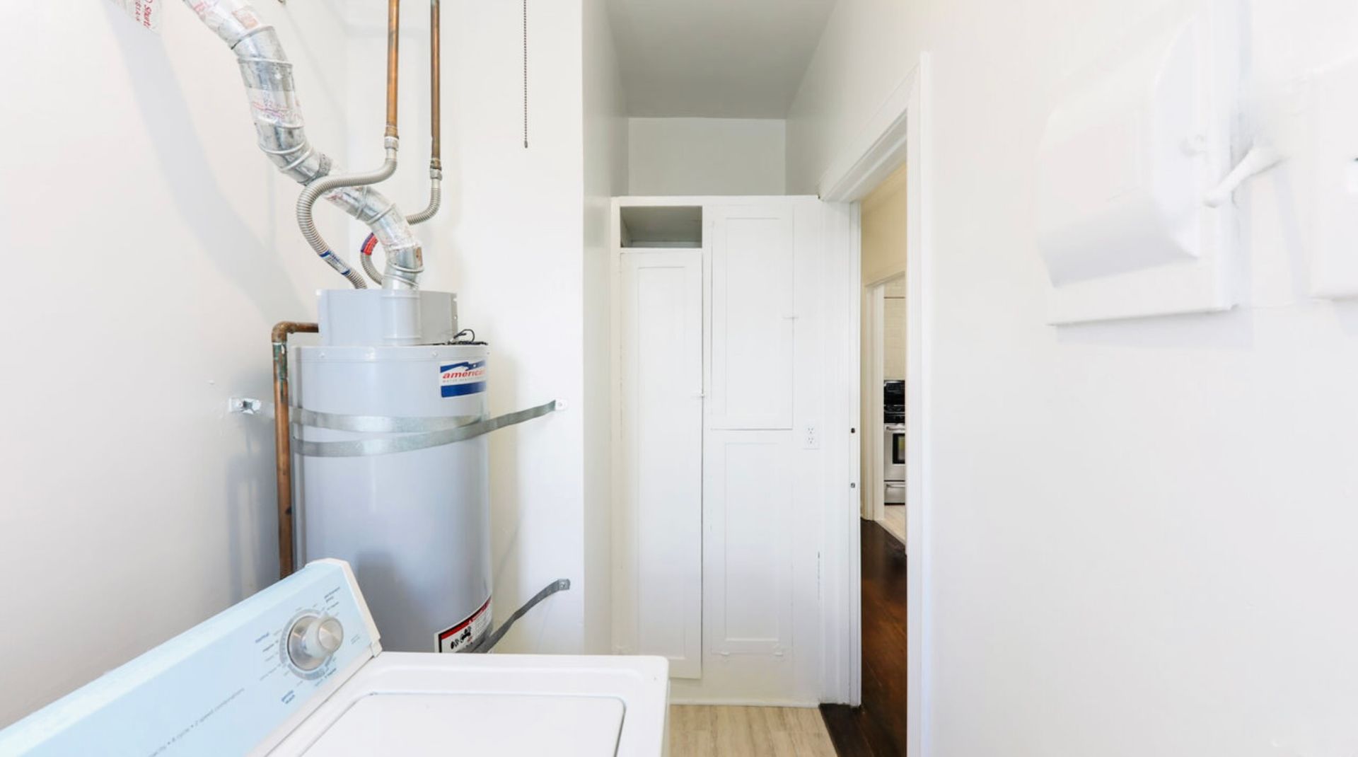 Features include hardwood floors, in-unit laundry, a spacious living room, dining nook, ample storage closets, and a private 1-car garage.