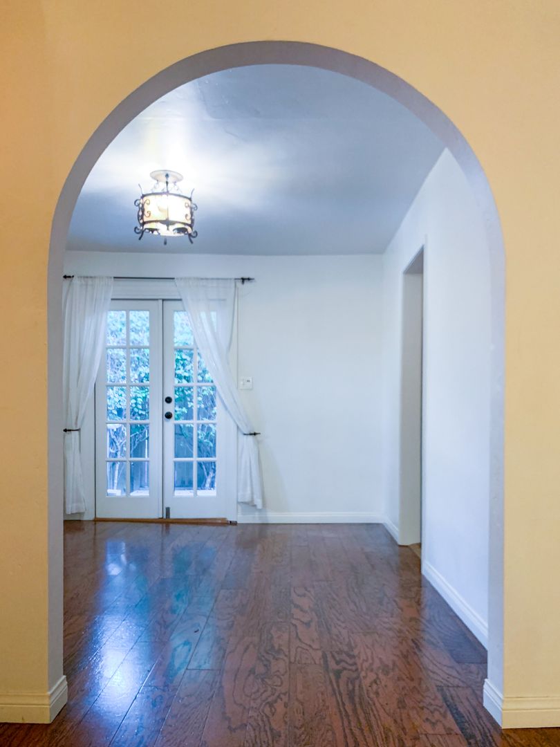 Dining Room - Arched entry and French Doors the lead onto a private deck